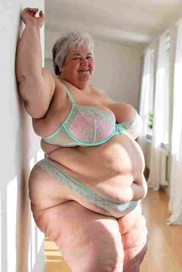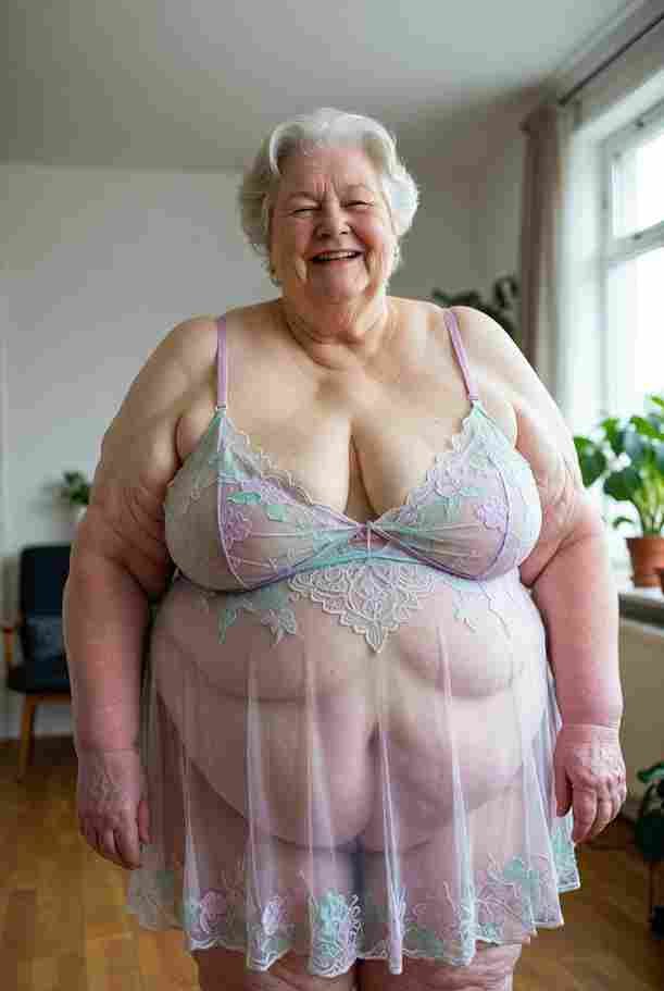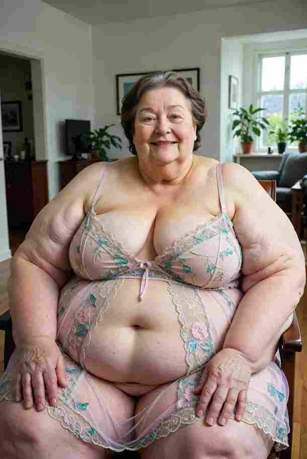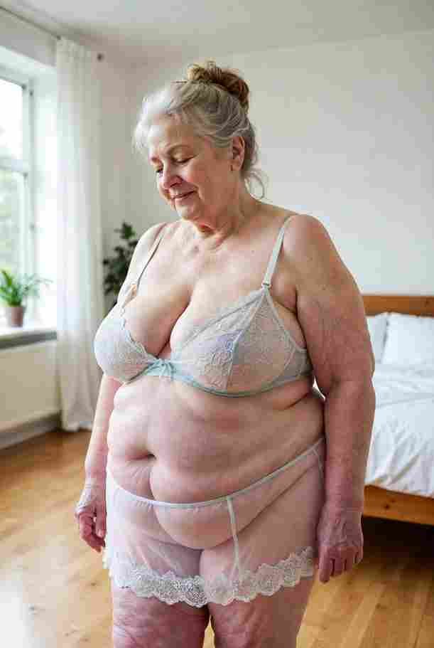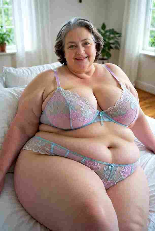 Legs crossed, dress riding high up her smooth thighs, that knowing smile playing on her lips. Her silver hair cascading over her shoulders, the halter top barely containing her generous cleavage. This woman knows exactly what she’s doing — radiating pure sex appeal with every inch of her mature, voluptuous body.