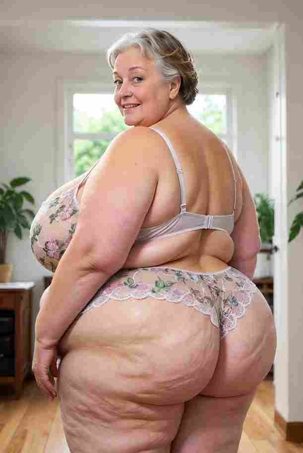 Firelight dancing across her skin, that low-cut dress threatening to spill her breasts at any moment, and those juicy thighs on full display. She’s giving “come and get me” energy with that confident smile. Mature women like her don’t just age — they become pure temptation.